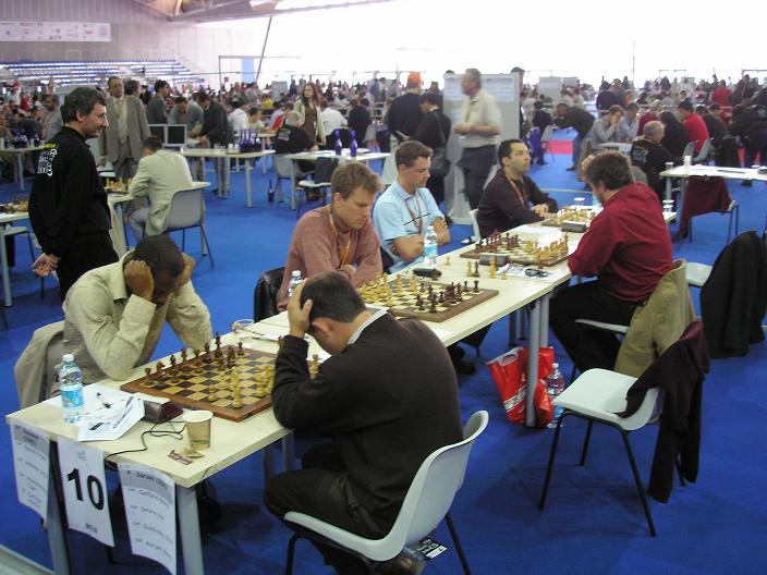 Now the serious stuff starts. The first round draw is always going to be the hardest, we often meet very strong opposition at the outset, with everyone on zero points we're in equal first position. Guernsey are paired with the 60th seeds Chile. Chile have 2 Grand Masters in their team but both are rested for the game against Guernsey. They field a 4 player team lead by International Masters. Maybe they have underestimated the 134th seeds Guernsey. We registered the following team in the morning Peter Rowe, Peter Kirby, Mark Ozanne and Garry Forbes in board order. Toby and Fred get the day-off. Chile proved to be too strong, and as expected in the first round Guernsey suffered a 0-4 defeat.>